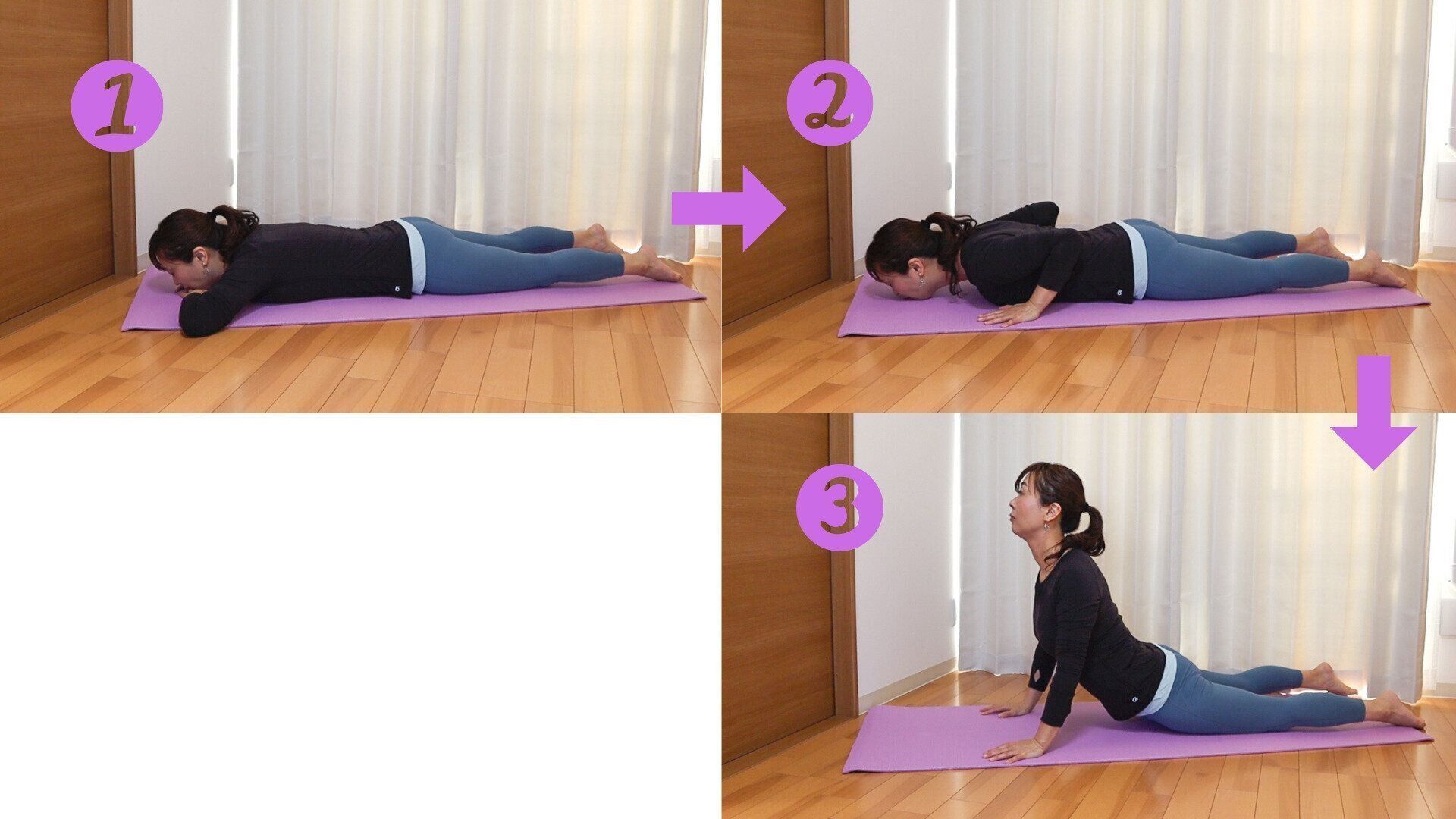 今回はヨガのポーズ「上向きの犬のポーズ」で、硬くなりやすいお腹の腹直筋を気持ちよく伸ばしていきます。