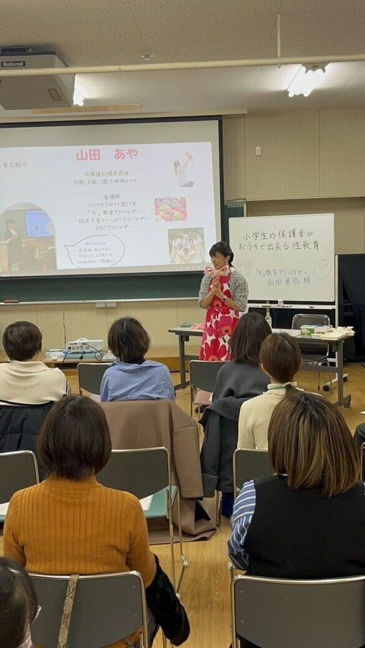 看護師、レディースクリニックのスタッフとして働いていた山田さんが現在のような性教育の授業をすることになったのは、教員をしている友人からの依頼がきっかけでした。中学生に向けて性教育の授業をおこなったことが実績となり、今では北海道内を中心に各地のこども園や子育てサロン、小中学校などへと足を運んでいます。