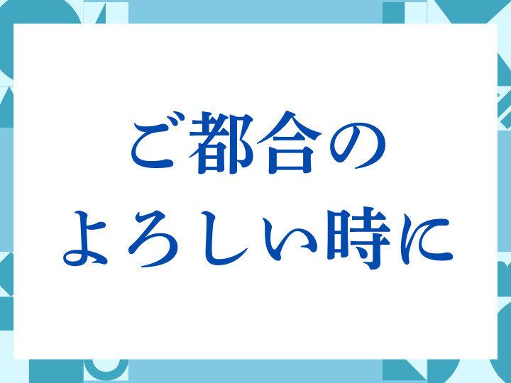 「ご都合のよろしい時に」は、相手のスケジュールや状況に合わせて行動することを提案する表現です。ビジネスにおいては、相手の時間を尊重し、無理のない範囲で対応をお願いする際に使われます。このフレーズを使うことで、相手に対する配慮や敬意を示すことができます。