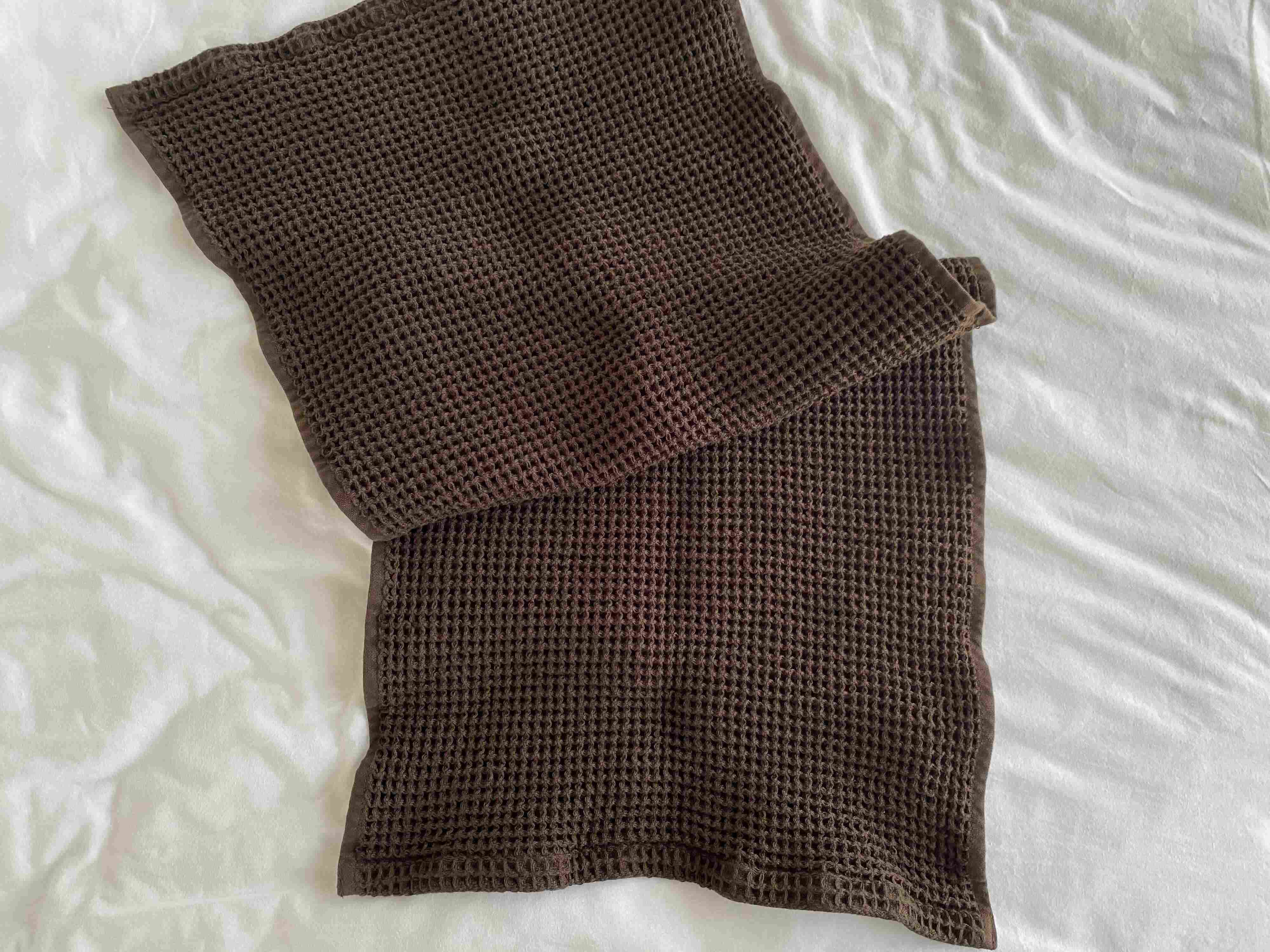 現在は無印良品のワッフルタオルを愛用しています。適度な厚みで吸水性も良く、乾きが早いのに加えて通常のタオルよりも繊維が飛び散りにくいので【水切りタオル】としてかなり優秀で気に入っています。