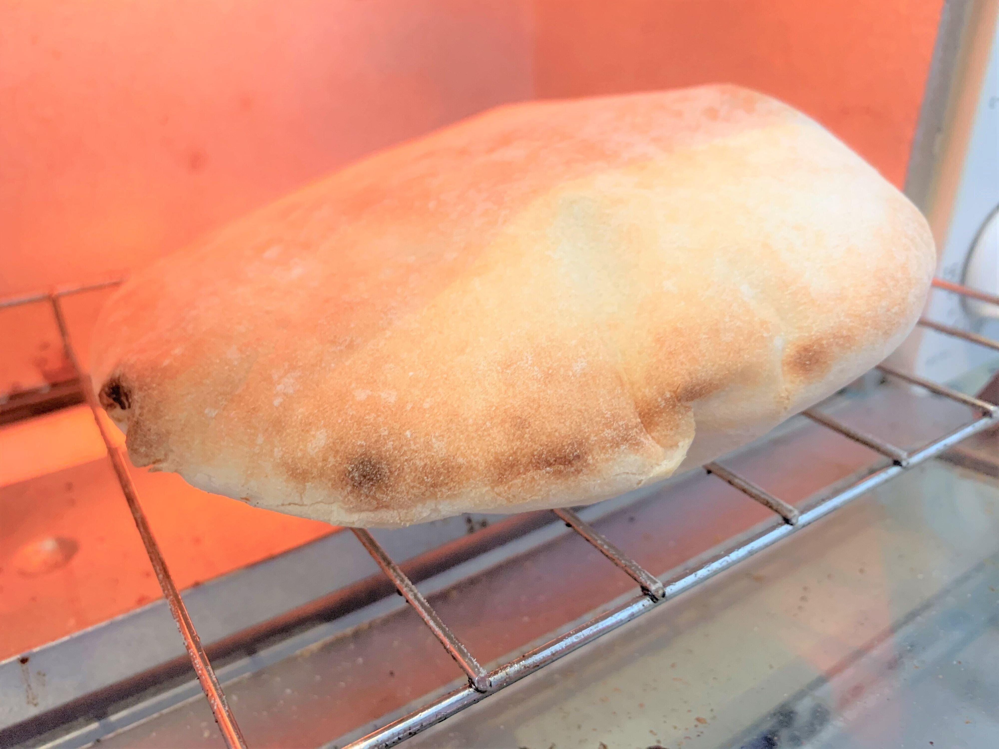 その後トースターで1分くらい焼くと、こんな風に膨らみます。