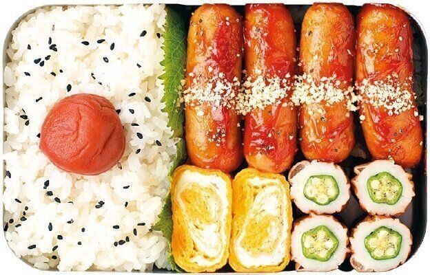 べんとうは、高さがそろうとキレイに見えるので、ウインナーの下にご飯を敷いて底上げ。この日のウインナーは少量のごま油で炒めてケチャップをからめ、粉チーズをふりかけました。
