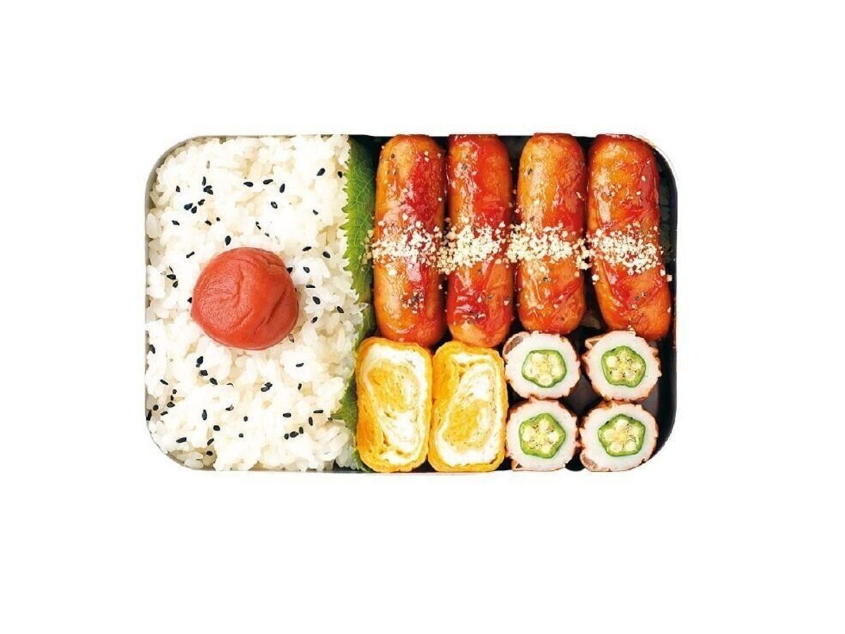 「別に全部のおかずが見えてなくてもいいのでは?」と思ったのがきっかけ。深めのべんとう箱にぴったりの詰め方です。小さな卵焼き器(12×14cmサイズを使用)で、卵2個を使って焼くと、写真のような卵焼きが作れます!