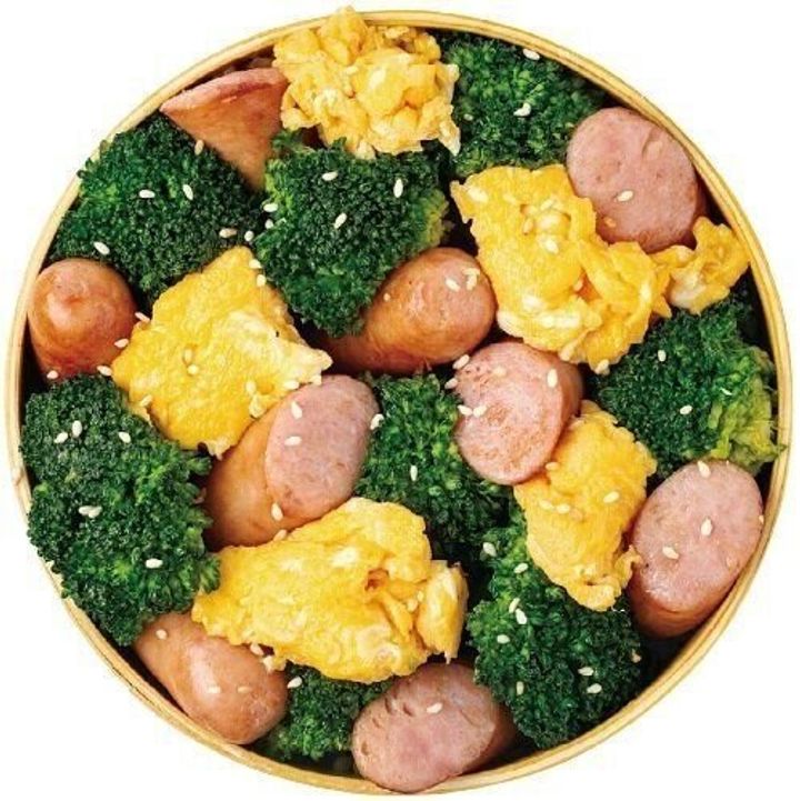 ・ウインナー、卵、ブロッコリーをごま油とオイスターソースで炒める