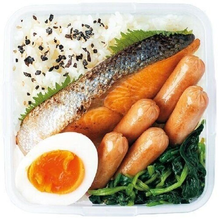 今日はヘルシーに魚べんとうなのね……と見せかけて、大好きな「マジ旨ウインナー」が5本も入っています。ゆで卵も入って、たんぱく質たっぷり。体力を使う仕事なので、量は大事!