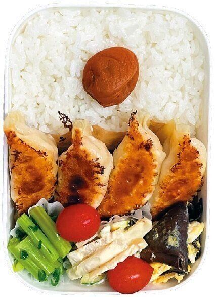 ギョーザは前日に調理するとおいしくないので、朝焼きます。冷凍なので、焼くだけラクチン♪
