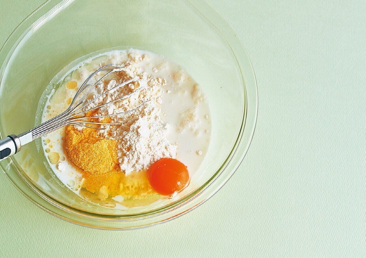 ボウルに[A]を入れて、泡立て器で粉っぽさがなくなるまで混ぜる。
