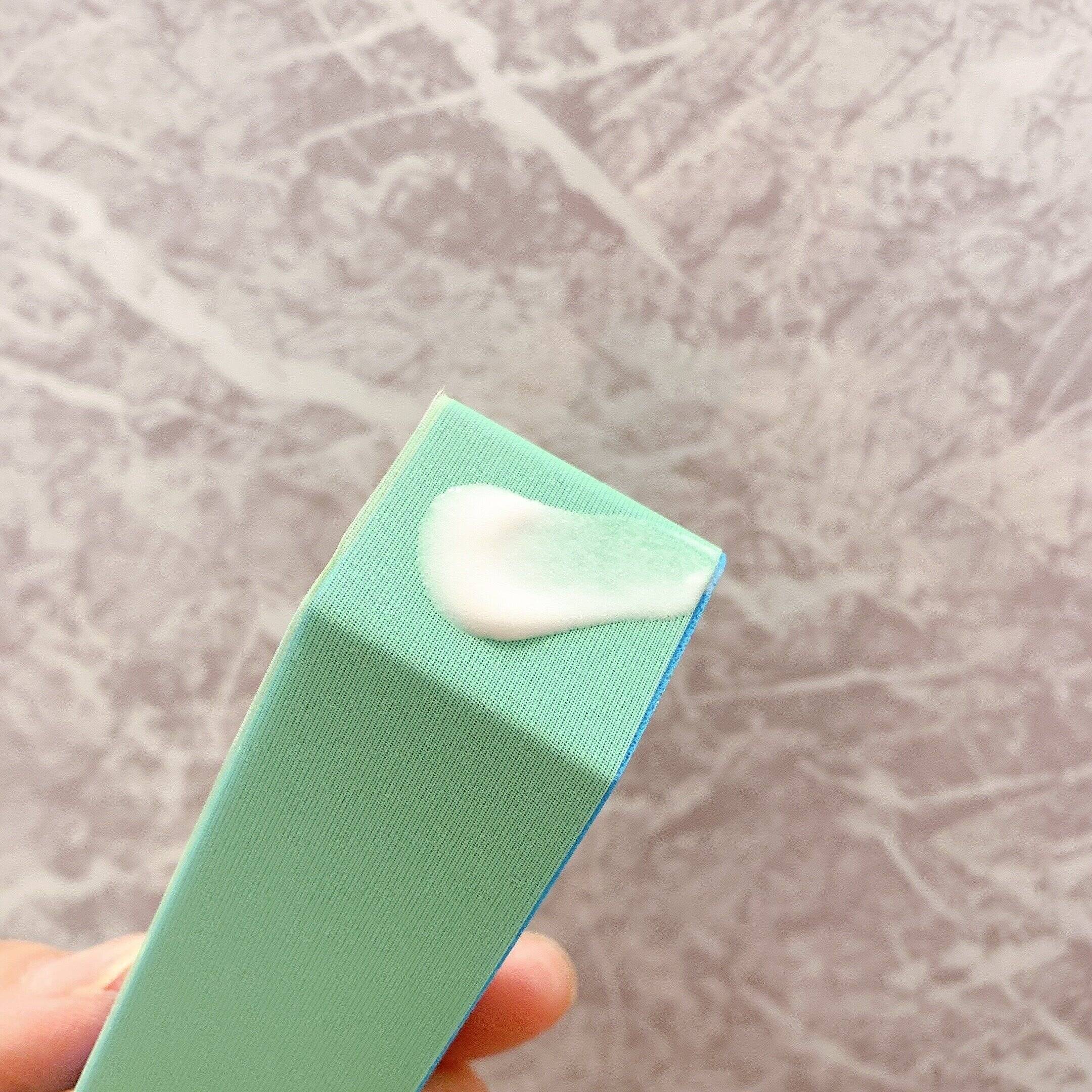 スティックタイプのメッシュパットが付いていて、洗剤を画像のようにメッシュパットにつけながら使用します。