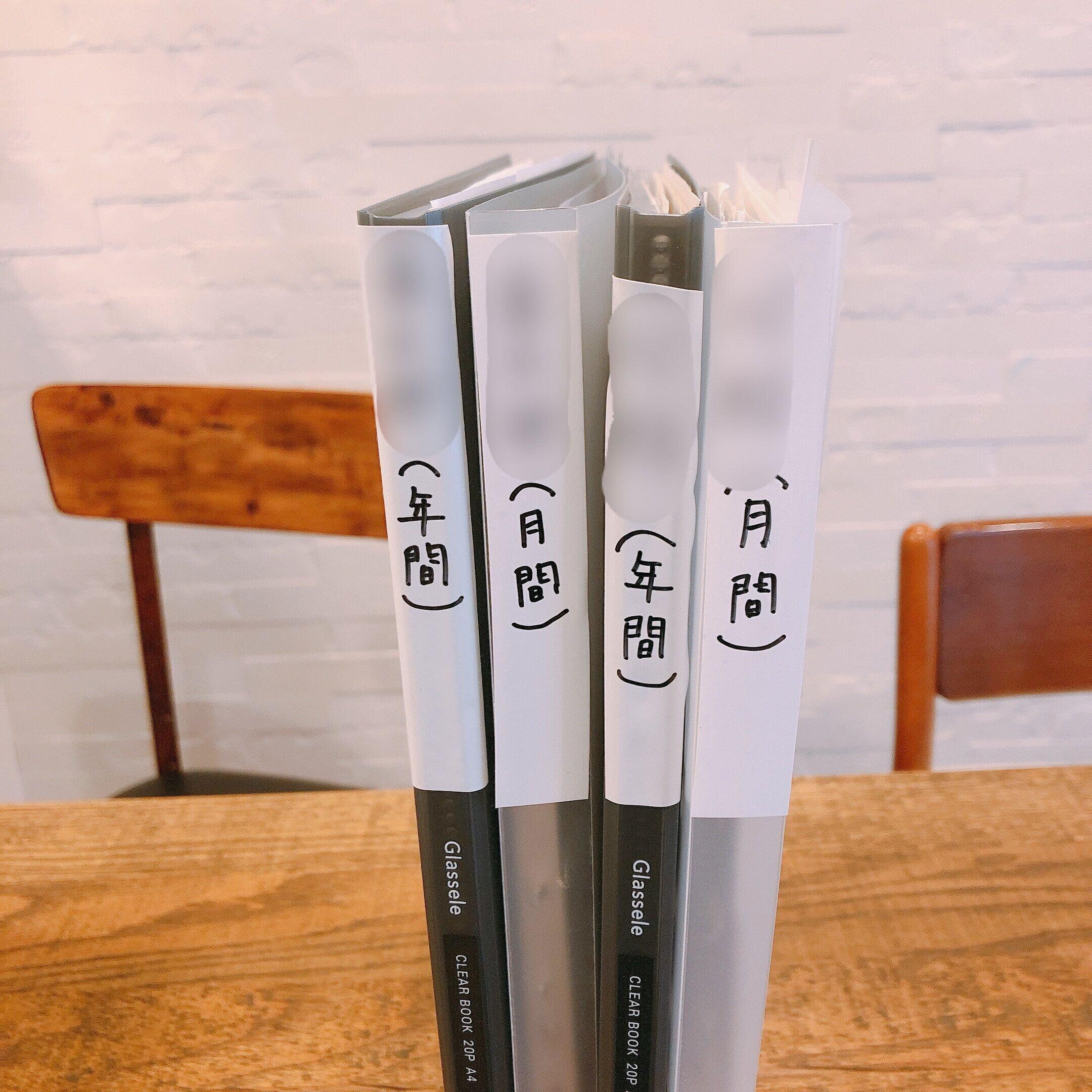 長期保管(年単位で保管するもの)は、ファイルブックに保管する。