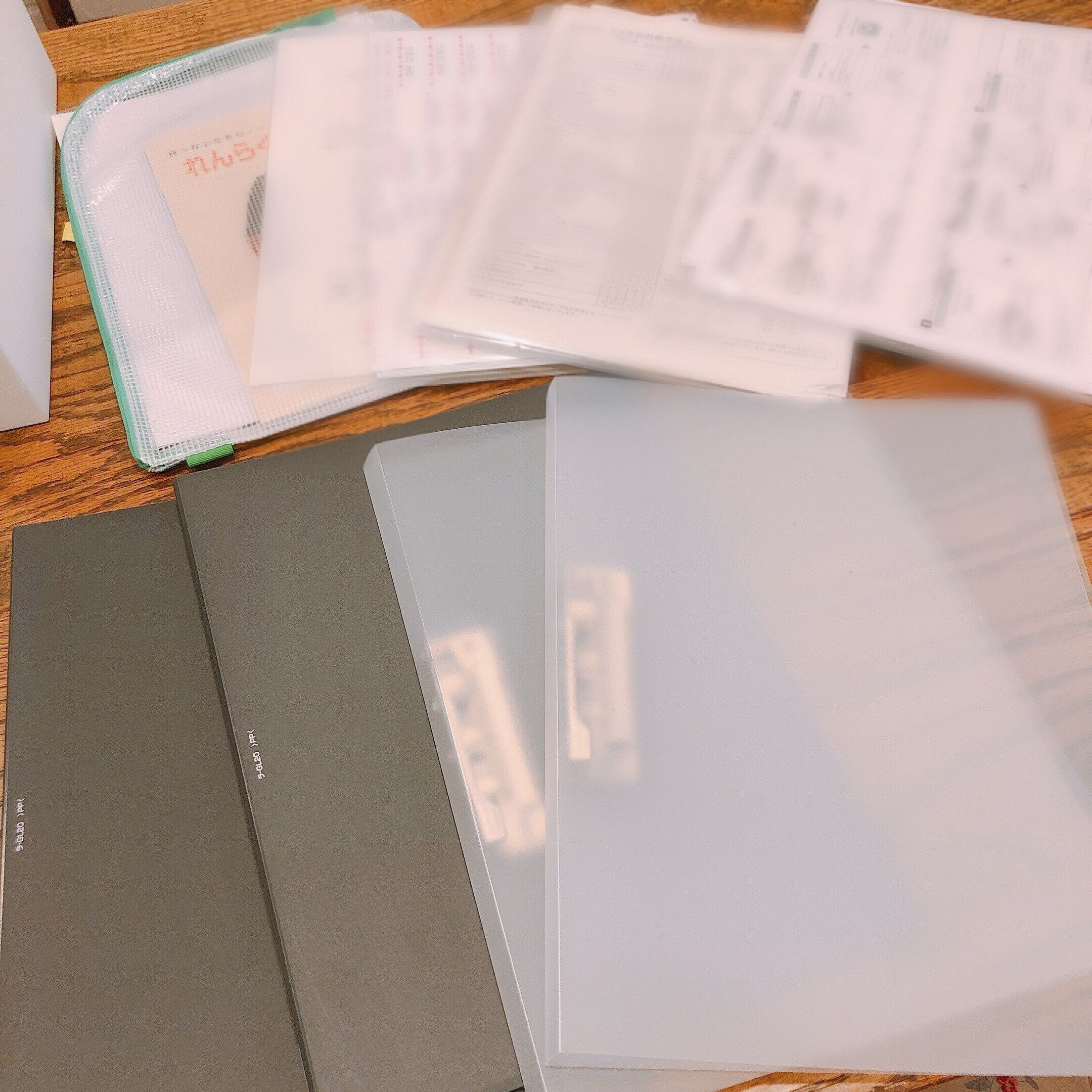 短期保管(月単位で保管するもの)は、バインダーに保管。バインダーだと、優先順位が高いものを上に持ってきやすく、終われば処分もしやすいです。