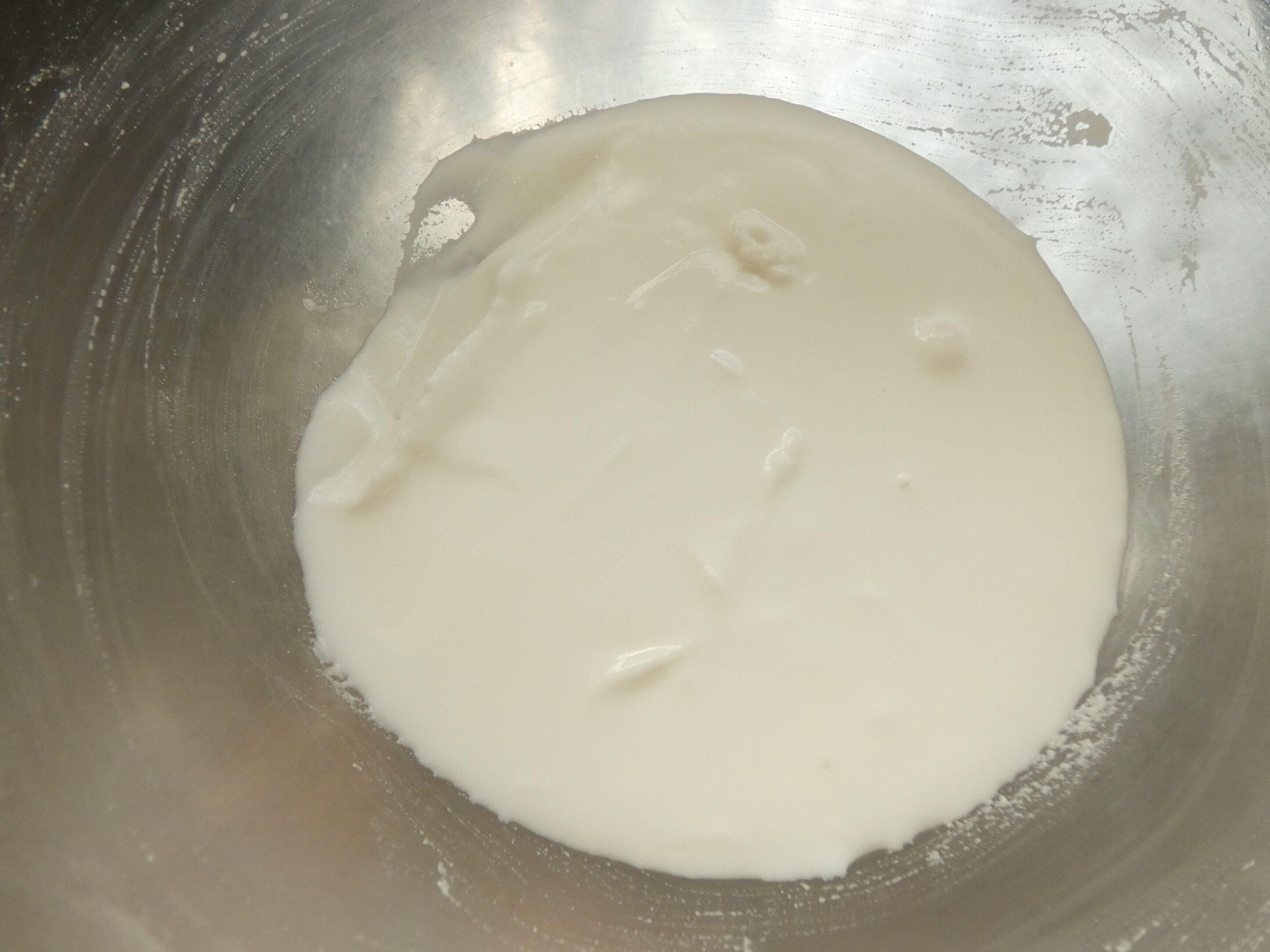 2.上新粉と水を合わせてよく混ぜたら、ふんわりラップをかけて電子レンジ600wで4分加熱します。