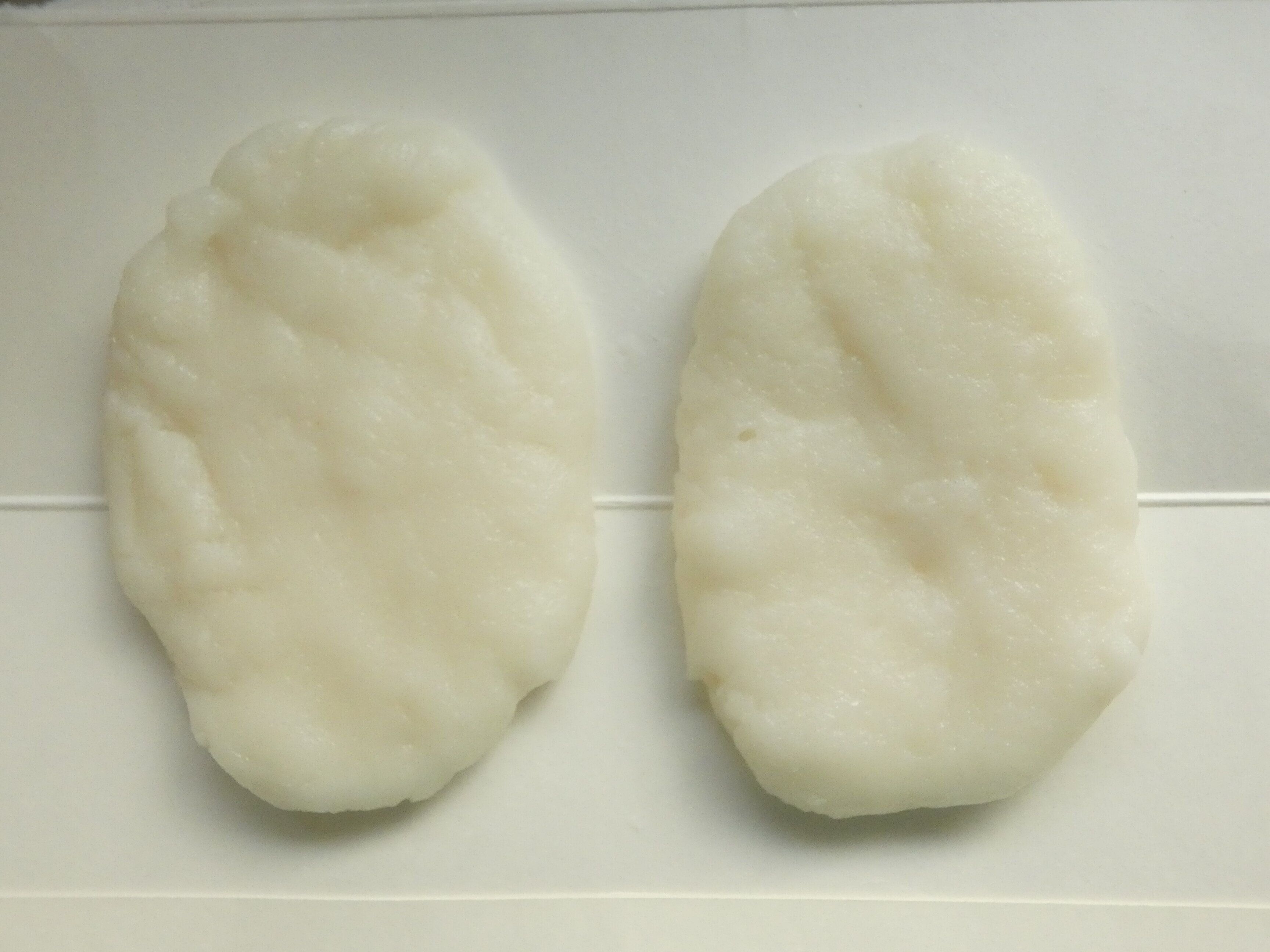 餅生地が熱いので、こねるときは注意して下さい。あんこを中に包み込む方法もありますが、俵型にして折りたたむと簡単です。