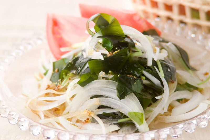 シャキシャキの新玉ねぎに生ワカメを合わせています。