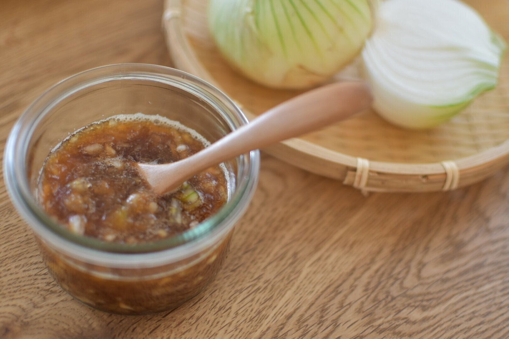 新玉ねぎを丸ごと使用した醤油ベースの和風ドレッシングは、子どもから大人まで大人気。