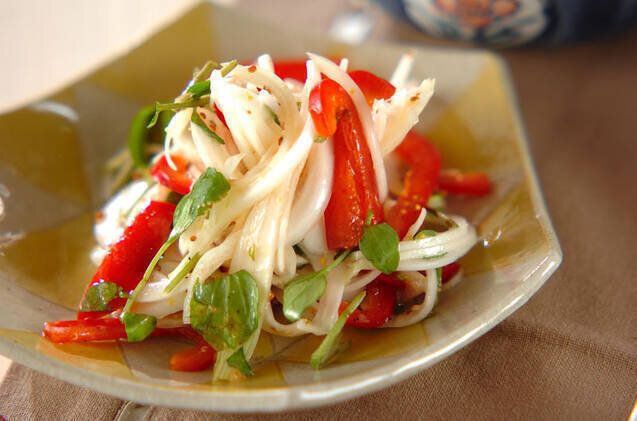 シャキシャキの新玉ねぎにクレソンとパプリカを合わせたおしゃれなマリネ。
