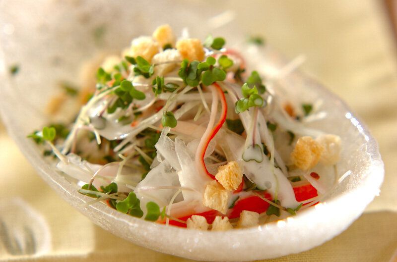 たっぷりの新玉ねぎとカニカマの組み合わせ。
