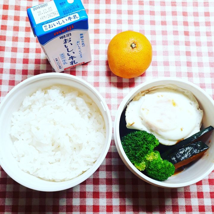 たまにハンバーグのリクエストがあるときは、写真のようにハンバーグの上に目玉焼きや蒸し野菜や焼き野菜をのせた丼にすることもあります。食事の前後でスポーツをするため、油っこくなりすぎないようなメニューを心がけていますが、これから先中学生になってお弁当が必要になれば、天丼やからあげ丼なども試してみたいなと思っています。