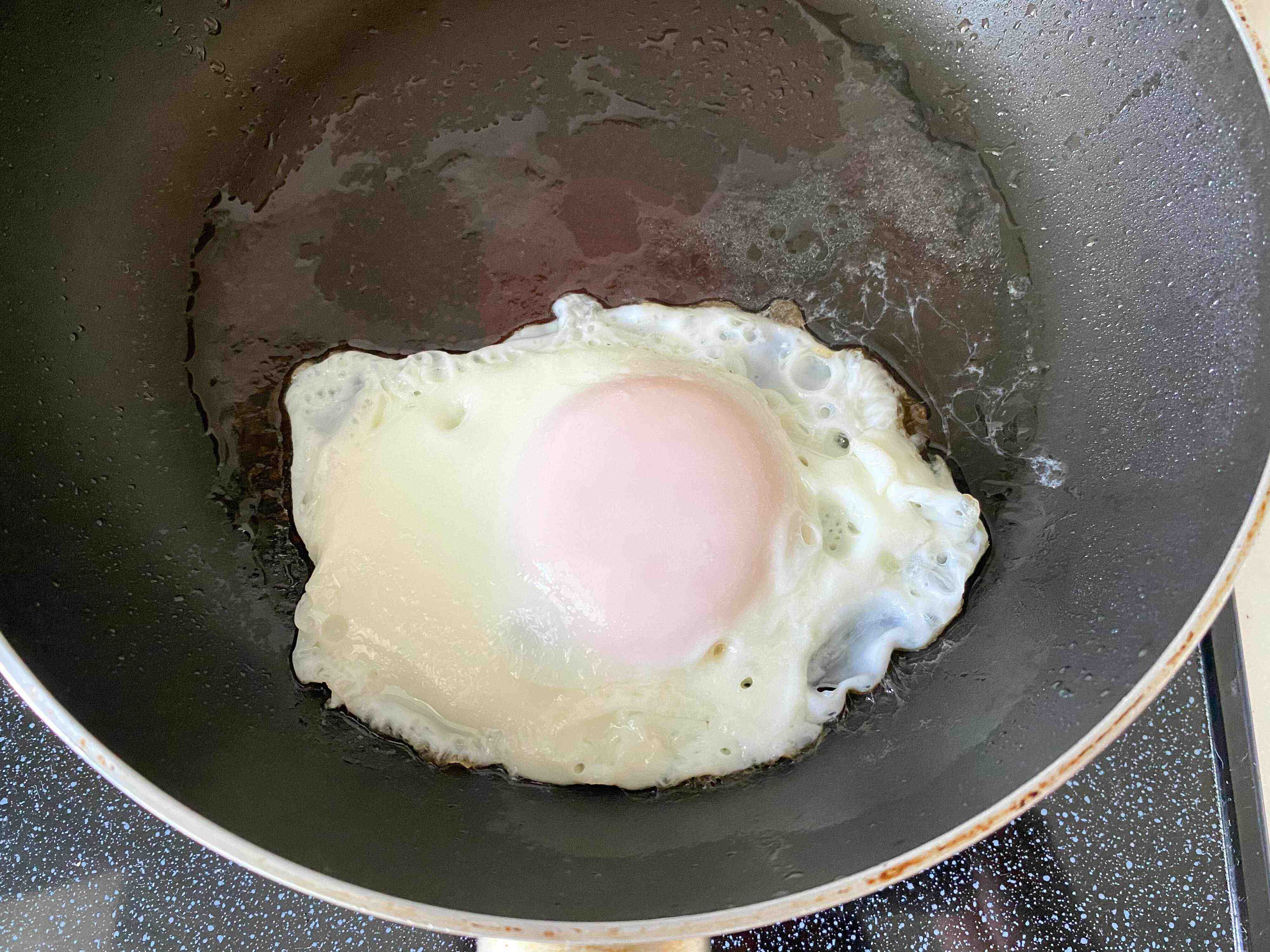 ・フライパンでサラダ油(分量外)を熱し、卵を割り入れ目玉焼きを作る。