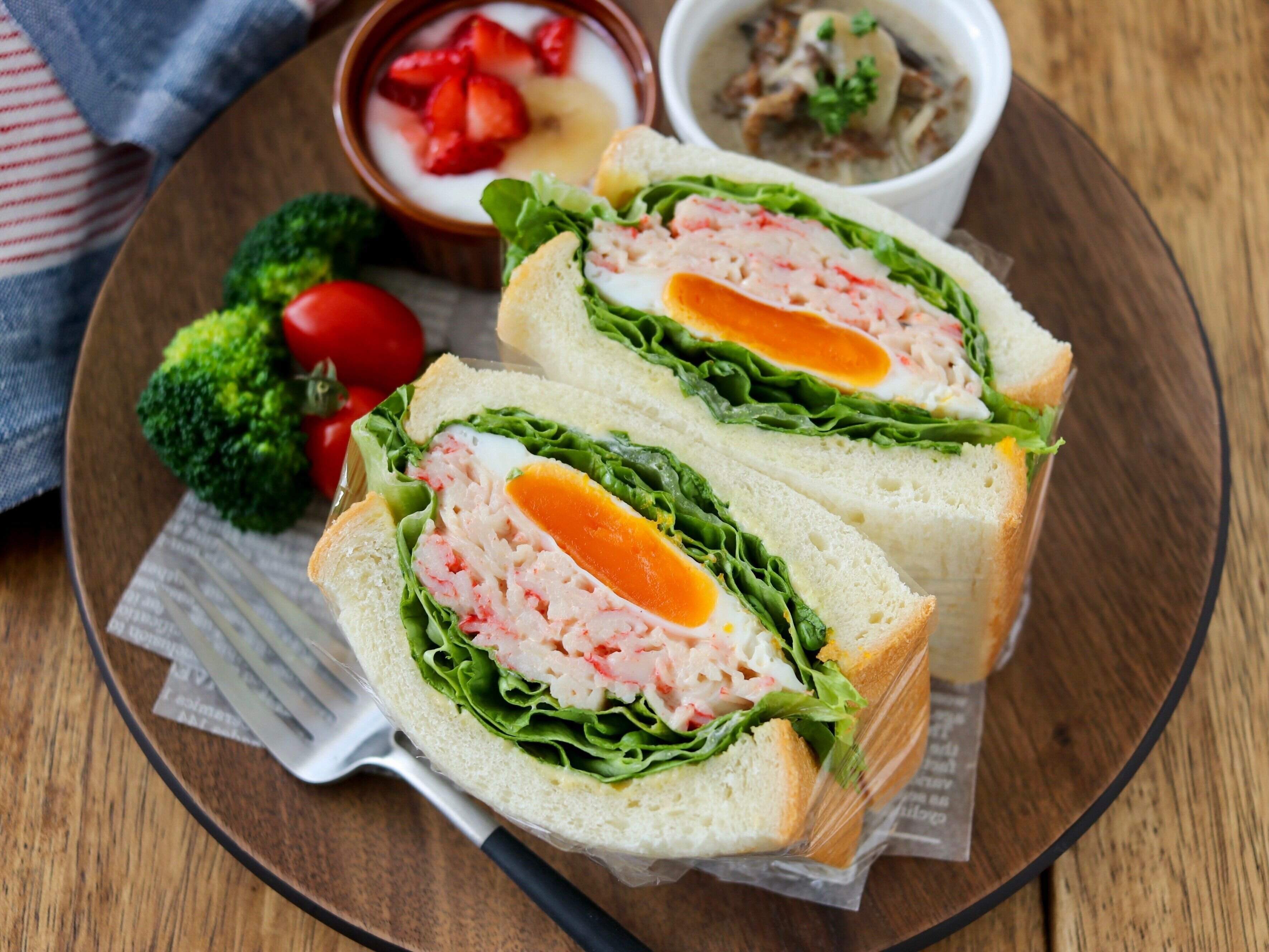 カニたまレタスの具沢山サンド