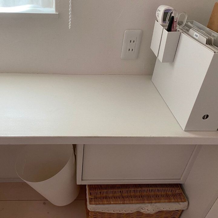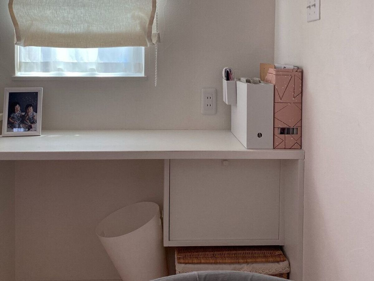 郵便物や配付物って開封したり記入したりとアクションが必要な時ありますよね。でも、必要なアイテムが揃っていないと、忙しいあまりついその辺にポイっと置いて後回しにしちゃったりすることがあるんです。そこで我が家では、一緒によく使うハサミやペン、そしてゴミ箱もすぐ横に収納しています。そうすることで一歩も動かずに切ったり記入したりという処理をすぐに行うことができるんです。できるだけ「溜めない」「入ってきた時に処理する」というのもすっきりをキープするコツの1つです!