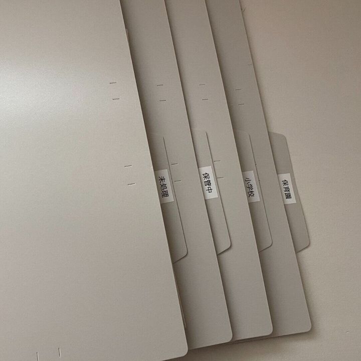 ファイルボックスの中には、コクヨのPP個別フォルダーを入れて、種類ごとに分類。新しく入ってきた書類ははさんで入れるだけと管理がとても簡単です。必要な時に必要なものをパッと取り出すことができますよ。