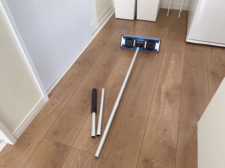 乾拭き・水拭きのどちらにも対応しており、柄の長さを変えることができるので便利です。