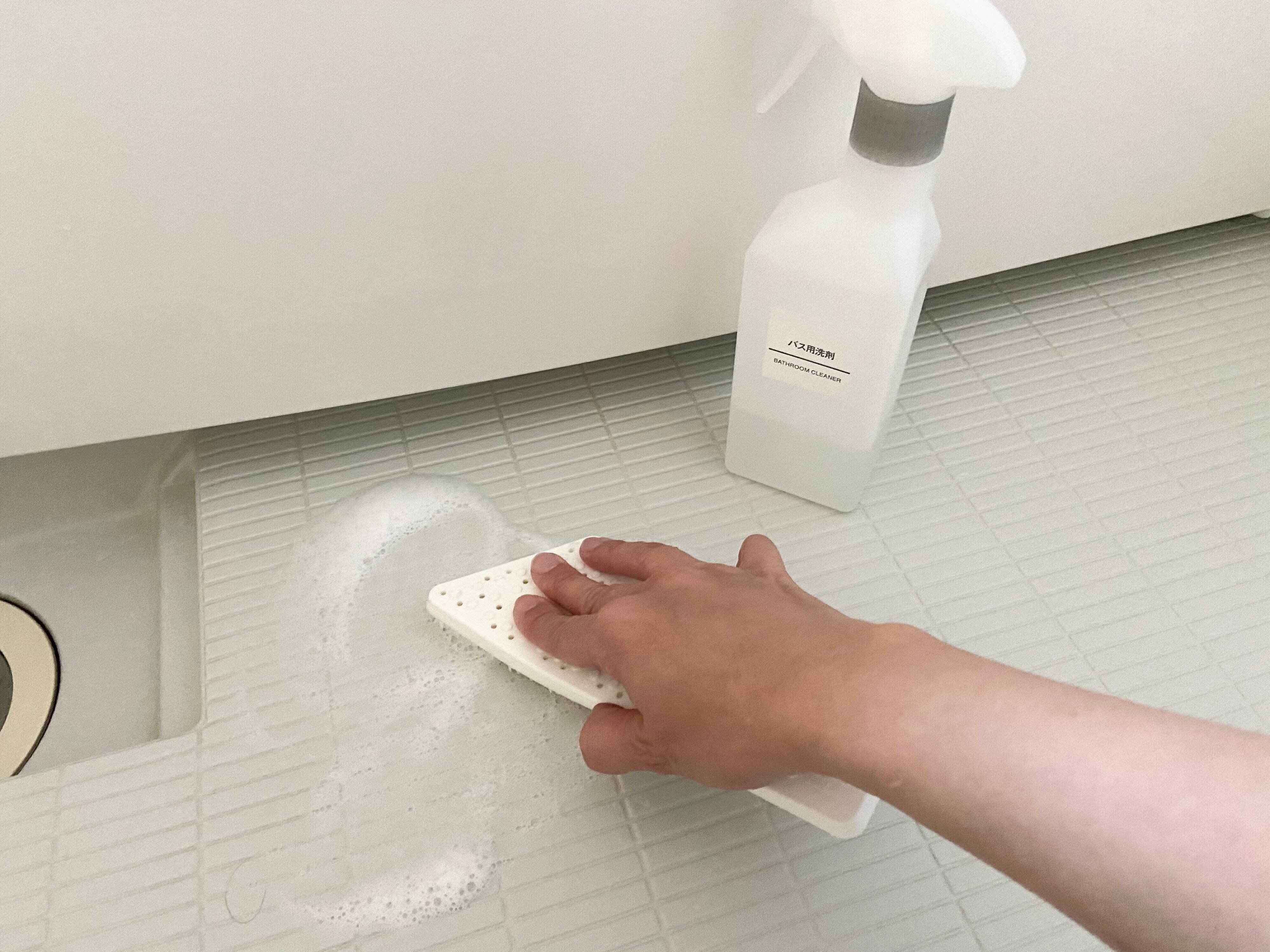 風呂床に溜まる汚れは皮脂汚れなので、溜まってしまうと水やお湯では取れません。手袋をすることも面倒に感じるタイプなので、手荒れの気にならない自然派の洗剤を使うようにしています。