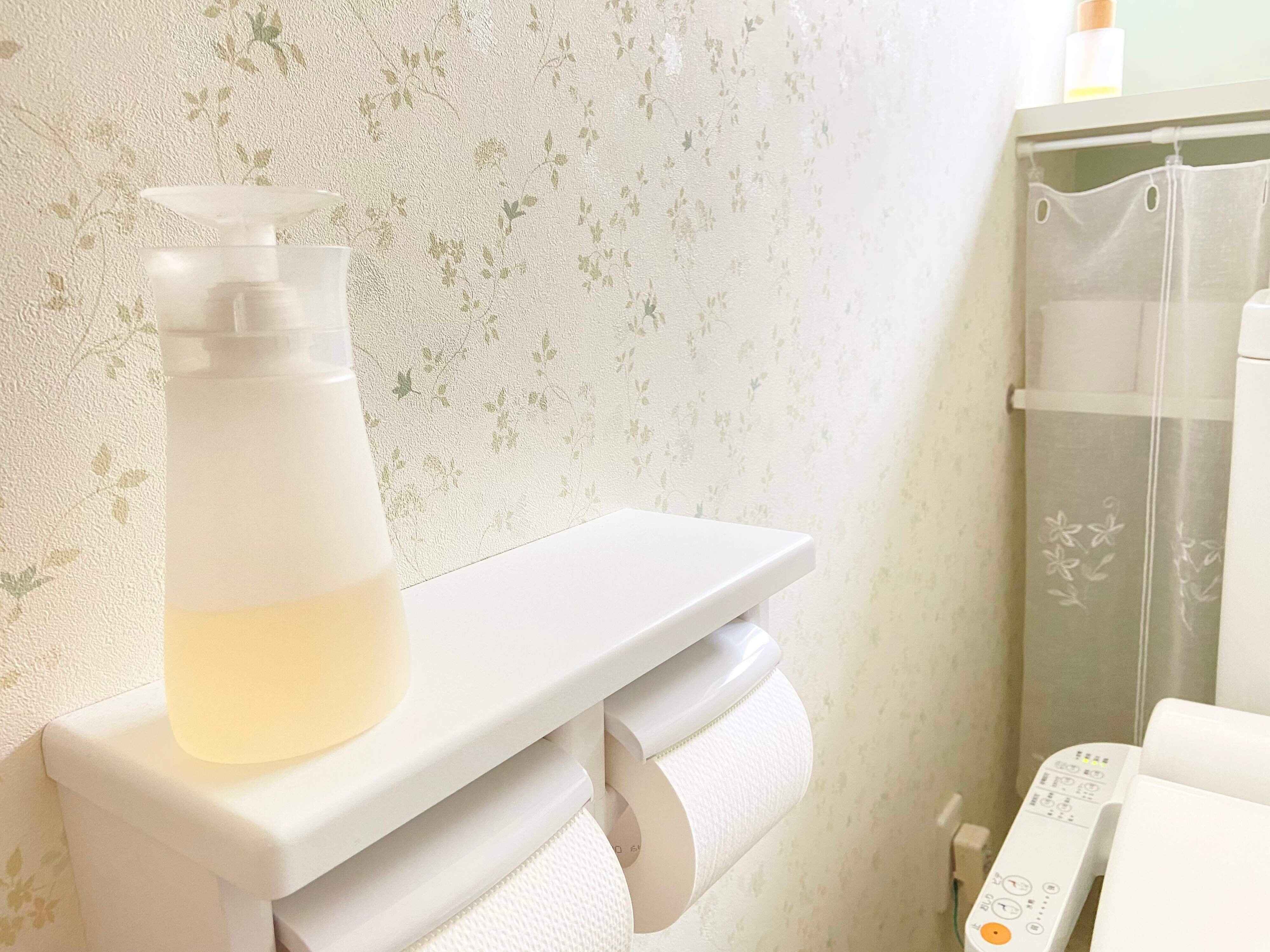 身体に優しい成分で出来ているので、肌が直接触れる便座はパストリーゼで除菌することに!いつでも使えるように1階も2階のトイレもワンプッシュの容器に入れて1つずつ設置しています。