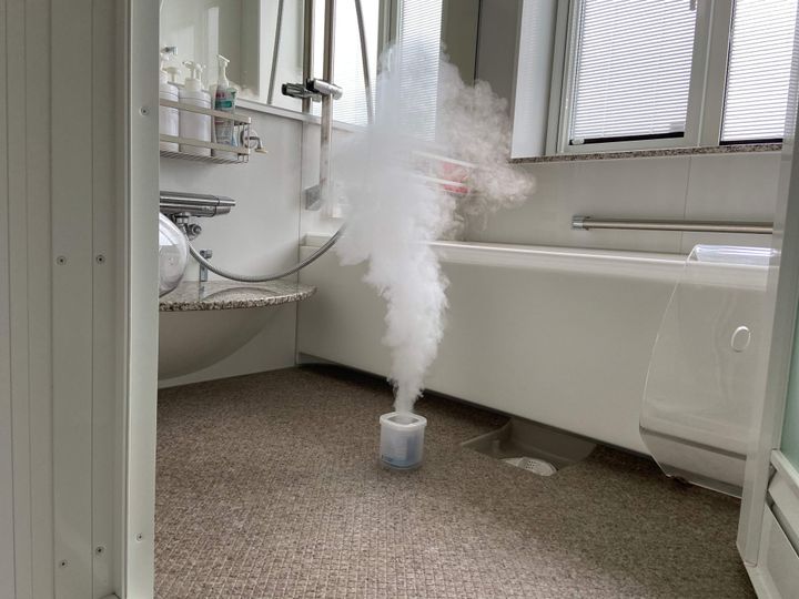 銀イオンで除菌してカビを予防しているので、煙ってなんとなく怖いと感じている方にも安心です。またおもちゃやお風呂用品もそのまま置いて一緒に除菌できるので、とても楽チンですね。