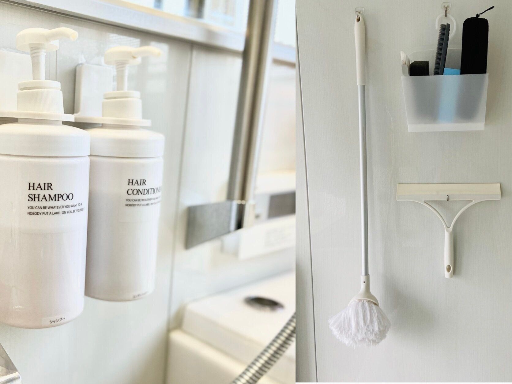 我が家はボトル類も、掃除用品もすべて浮かせる収納にしています。浮かせる事によってボトルの底がぬめる事もありませんし、水切れも良いのでカビも発生しにくくなります。