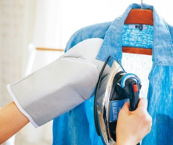 ジャケットやシャツなどの細かい場所のアイロンがけに。ミトン型なので手ではさんで、布を引っ張りながらかけられる。(幅15×長さ29.5×厚み2cm)