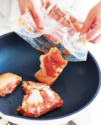 *鶏肉は[A]と一緒に冷凍用保存袋に入れ、もみ込んでから袋内に広げる。