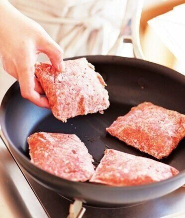 1 なんと!こねずに焼くだけ!四角いハンバーグ