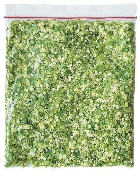 長めに切って冷凍するとシナシナになってしまうけど、細かく切れば、風味、色み、食感などが落ちにくい。