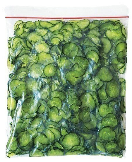 薄切りにしたら塩(きゅうり1本につき小さじ1)をふって混ぜ、20分おく。水で洗い、水けをよく絞ってから冷凍。