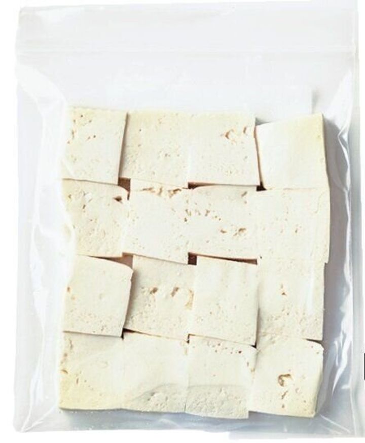冷凍するとスポンジのような状態になって、味がしみやすくなり、食感はお肉のように。木綿でも絹ごしでもOK。