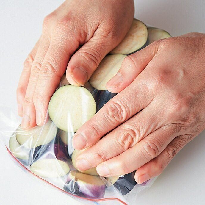 空気を抜いて(真空状態にしてから)ファスナーを閉めて冷凍室に入れる。