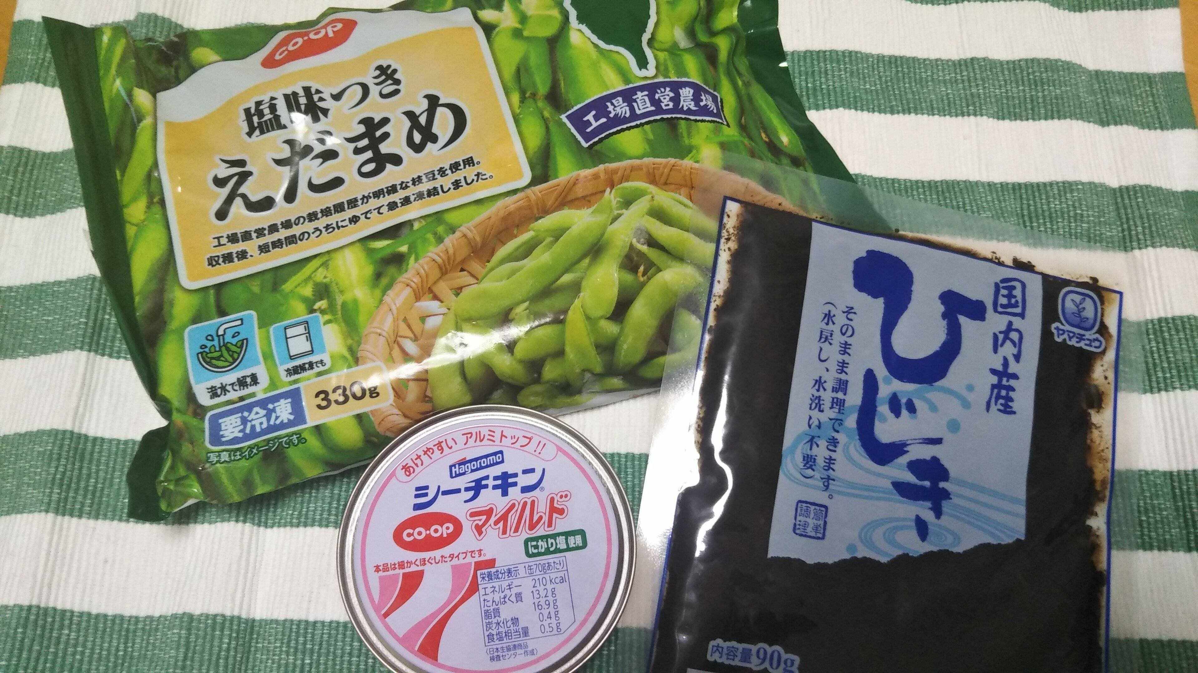 ●生ひじき+ツナ缶+枝豆+コーン缶+マヨネーズ