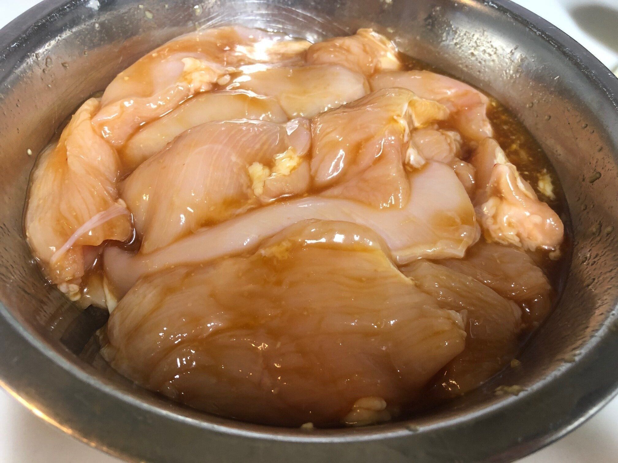 これで、鶏むね肉を柔らかジューシーにする下処理は終わりです!