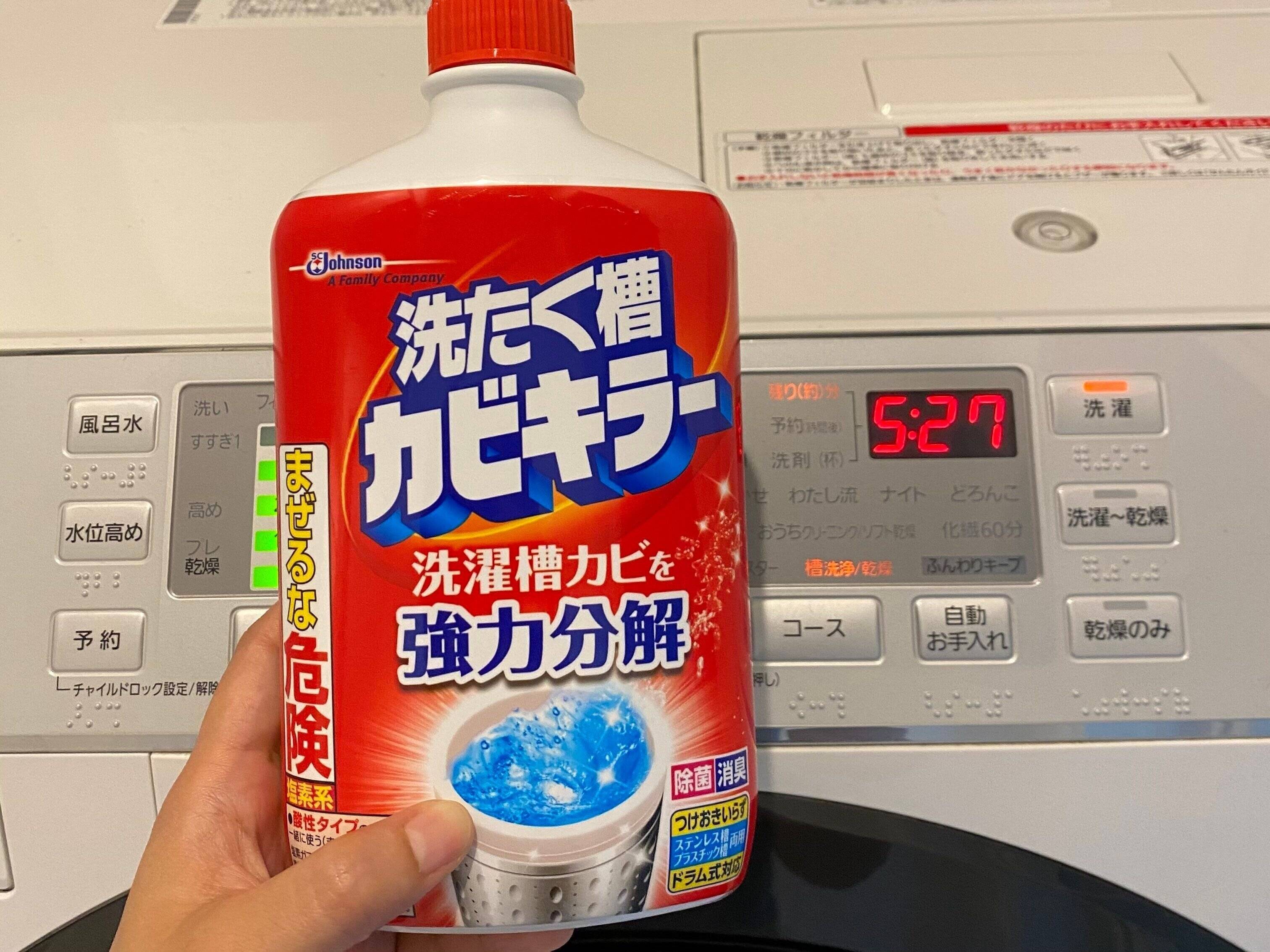 やり方はとっても簡単。市販の専用液を購入して、全量を投入!洗濯機にある「槽洗浄」モードを押すだけ!