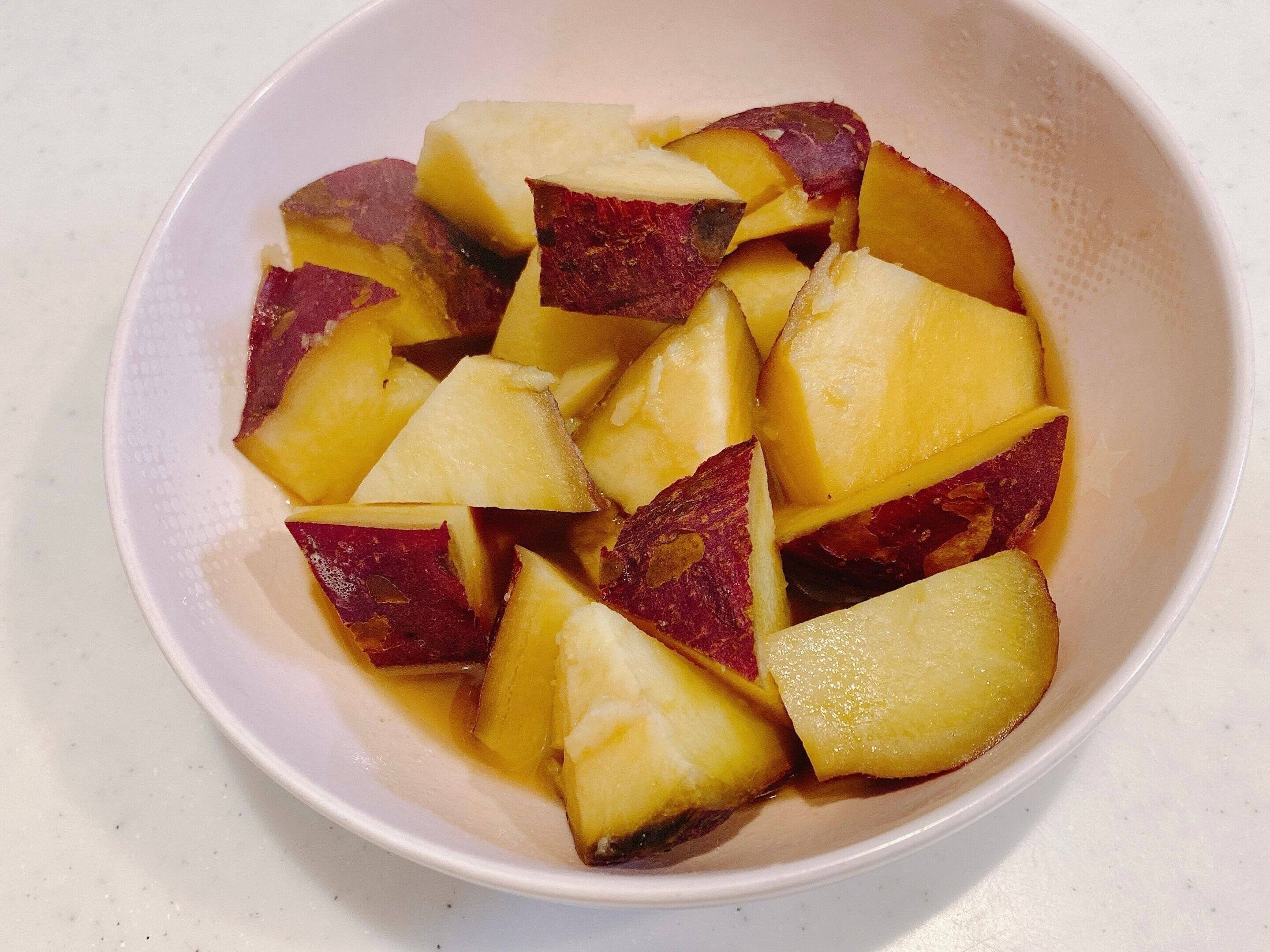 1.さつまいもは皮つきのまま乱切りにし水にさらす。