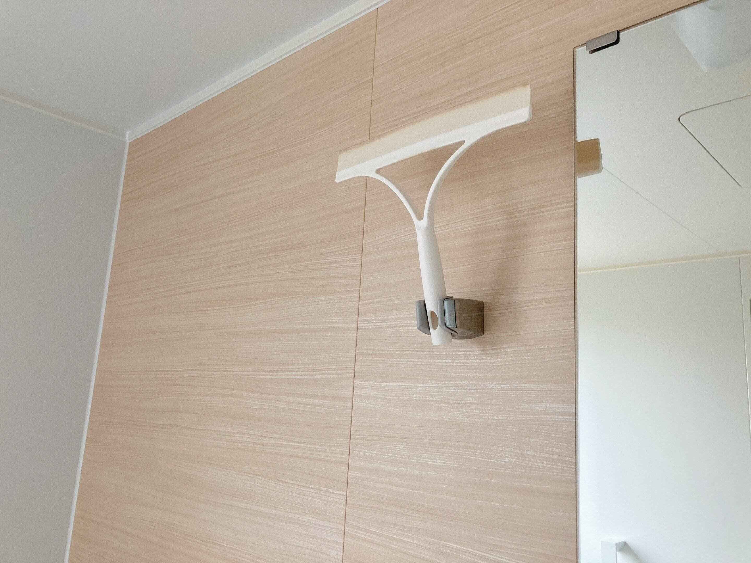 水切りワイパーで、鏡や壁、床の水切りをします。水垢やカルキ汚れを落とすにはかなりの労力がかかります。面倒な掃除を減らすためには、この水切りも必須です。
