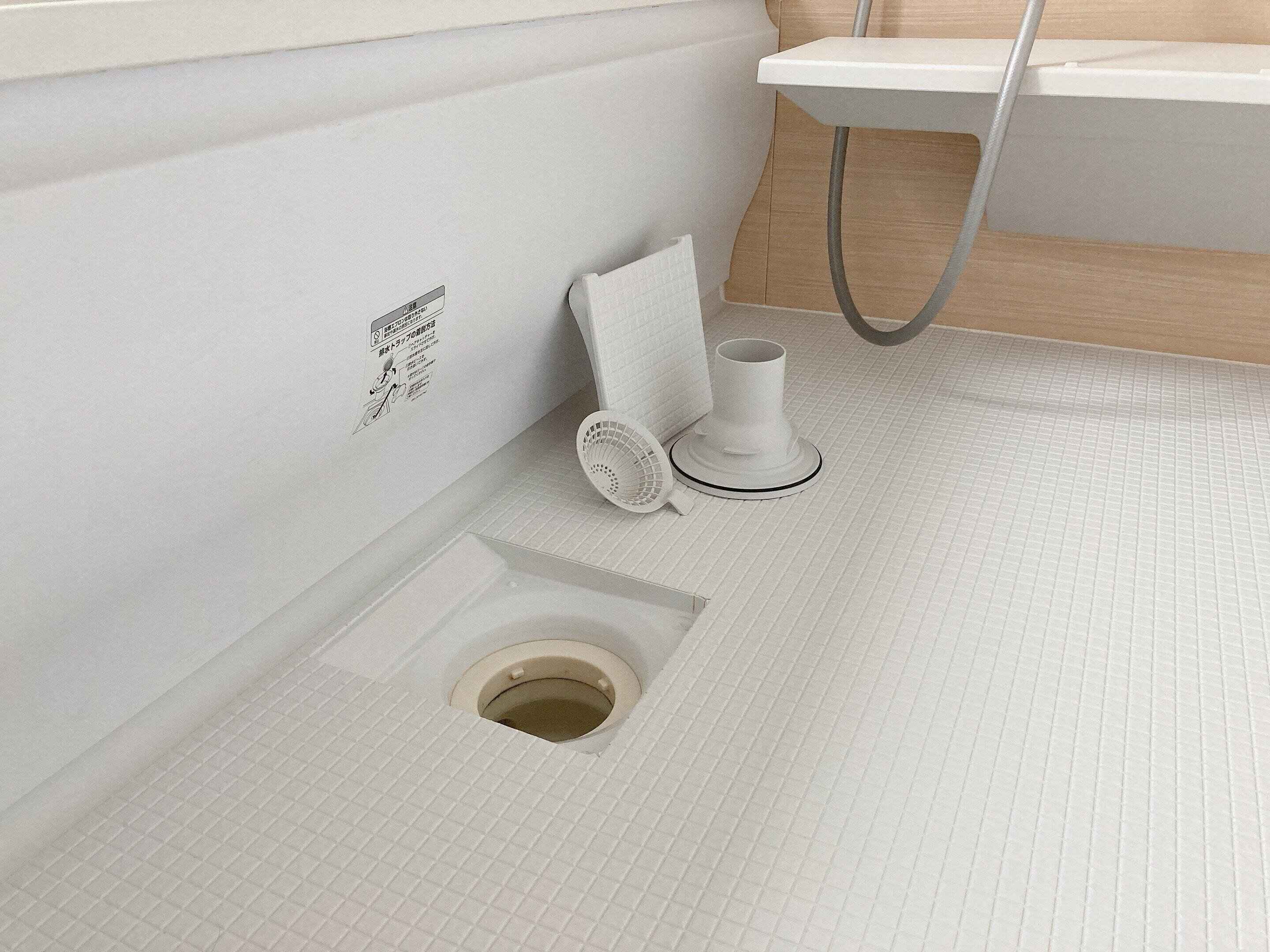 最初に排水口まわりの部品は全て取ってスポンジで汚れを落とし、水で流します。ここは1日でも放っておくと臭いや汚れがどんどん取れにくくなるので毎回欠かさず洗います。