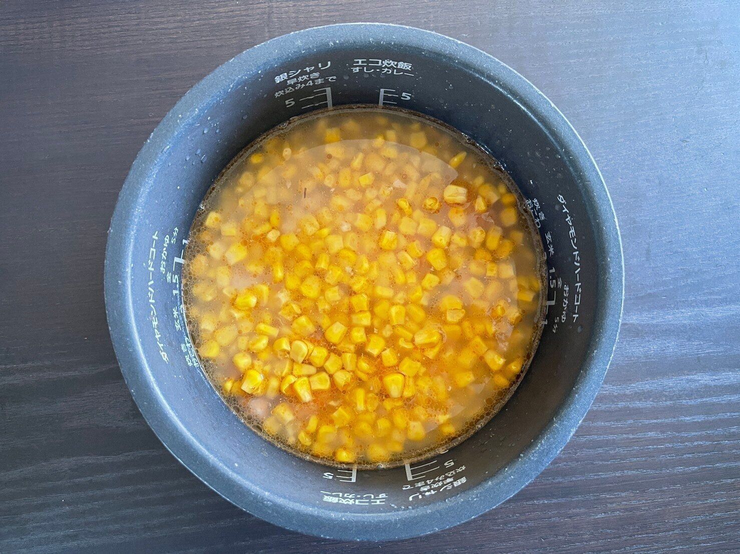 缶汁まで丸ごと!鮭缶とコーン缶の炊き込みごはん