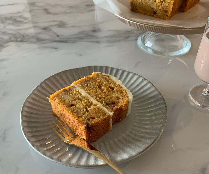 冷めたら乾燥しないようにラップをしておきます。翌日はフロスティングも馴染み、さらにしっとりしておいしいです。保存期間は冷蔵でで3〜4日くらい。