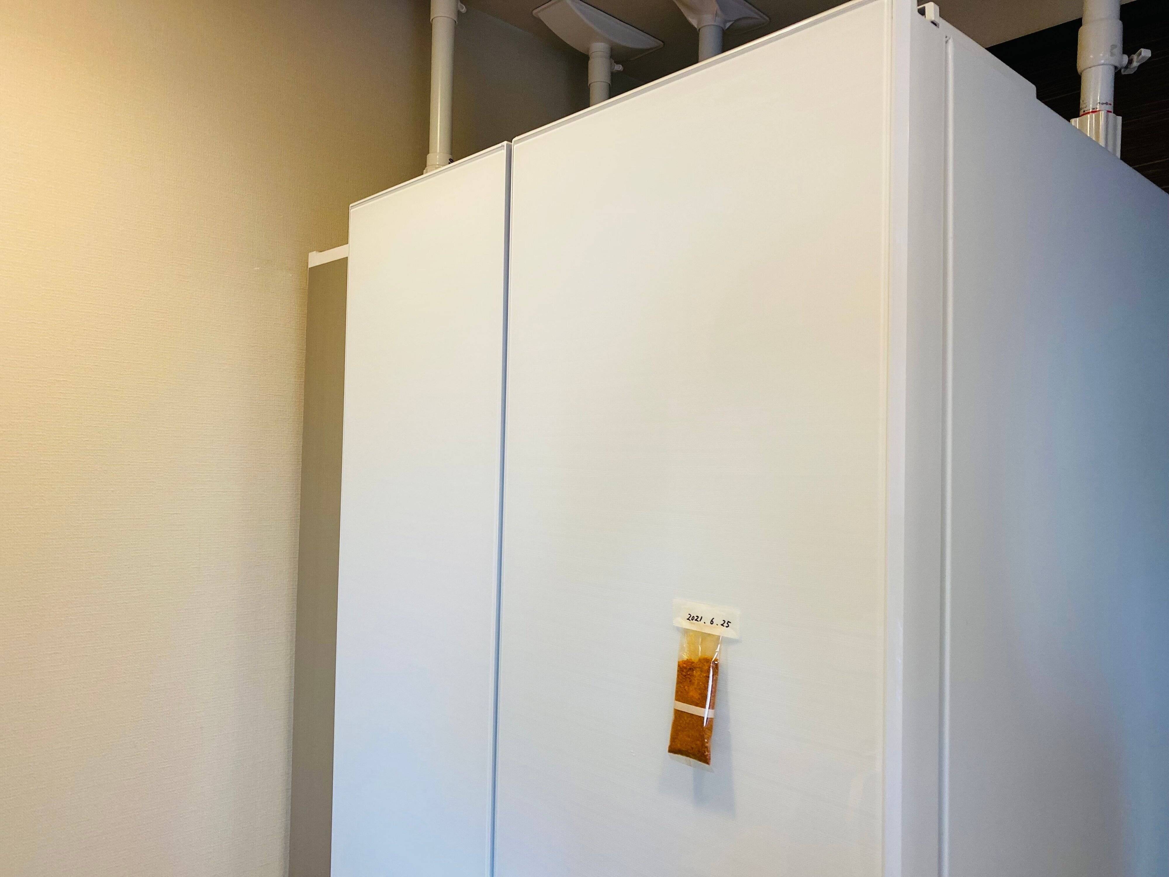 スッキリした部屋で暮らす今は、存在を忘れないように、入手日を記載したマスキングテープで目立つ場所に貼り付け、すぐに使う習慣づけをしました。
