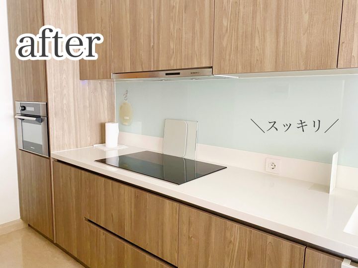 引き出しの中なので油ハネもなし。料理が終わった後の拭き掃除も、物が無いのでササっと掃除ができるようになったのでラクになりました。