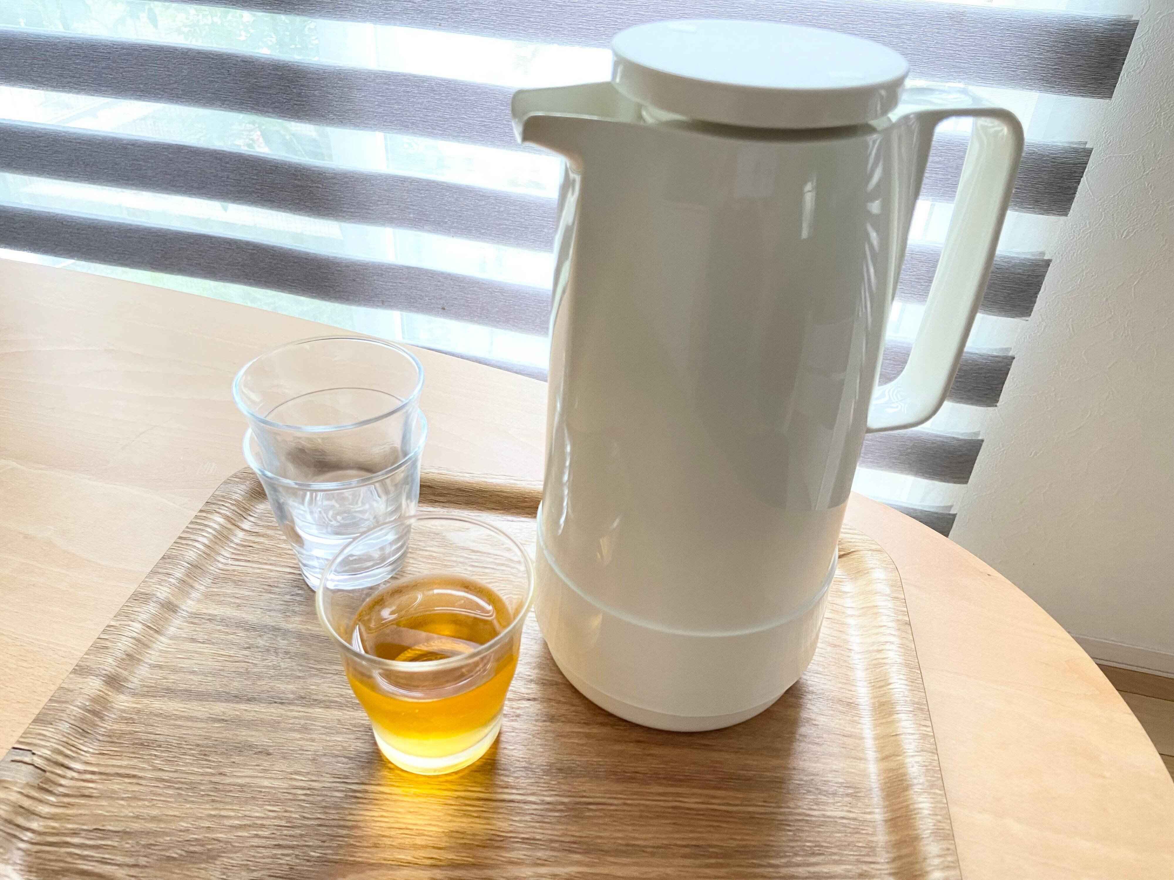 保冷ポットに入れておくと持ち運びが自由で、こぼれる心配もあまりなく子供たちでも簡単に使えるのがメリットです。かつ水と氷でお茶のタネを割っておけば氷を取ってこなくてもとっても冷えたお茶がすぐに飲めるので時短で便利ですよ。