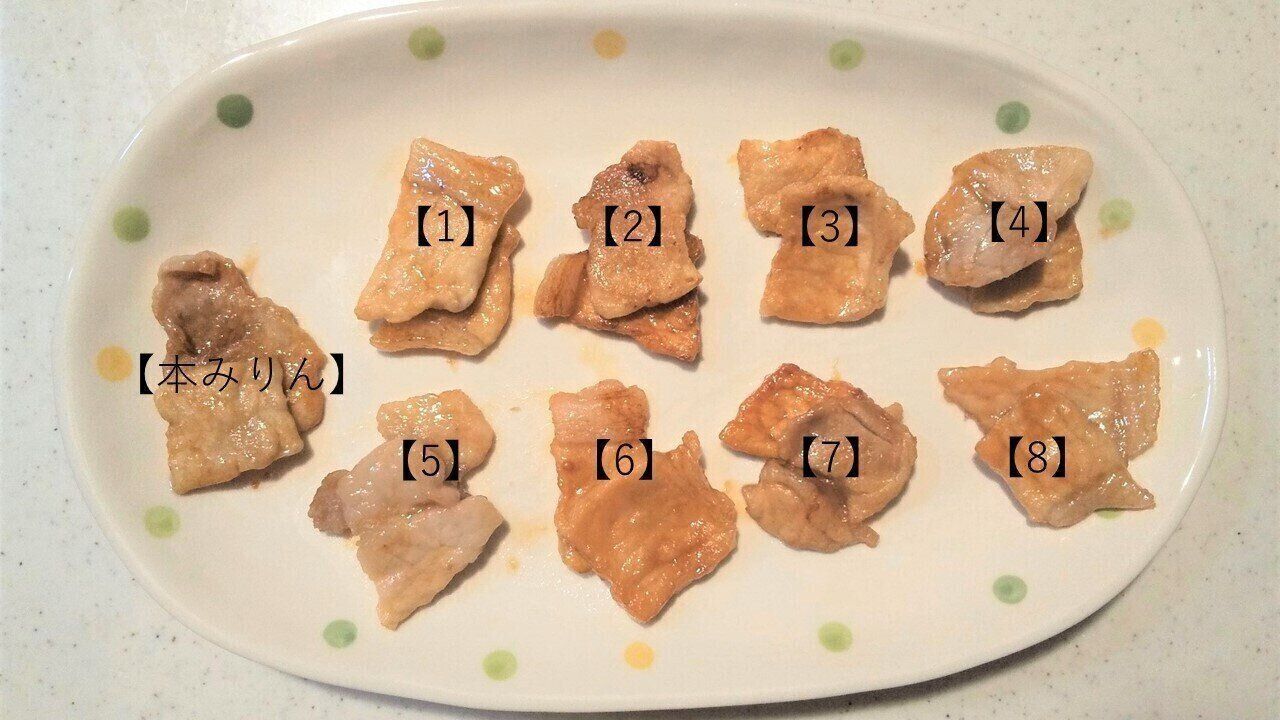 「本みりん」がほどよい甘さを感じるのに対し、【3】【4】【7】【8】は控えめな甘さのやさしい仕上がりになりました。そのほかは、「本みりん」に近いほどよい甘さとなっていました。