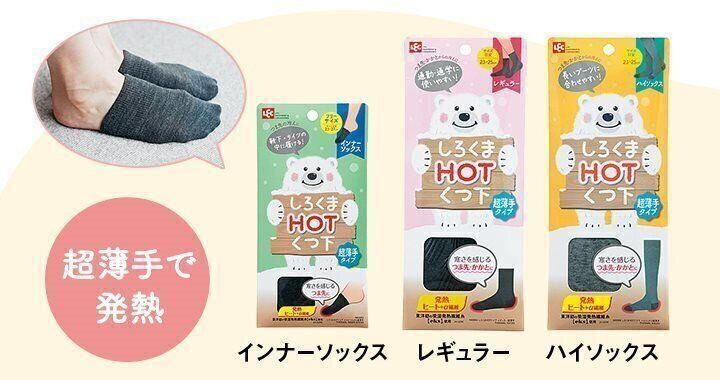 「しろくまHOTくつ下 超薄手」インナーソックス¥680、レギュラー¥980、ハイソックス¥1,280(すべて税込み参考価格)